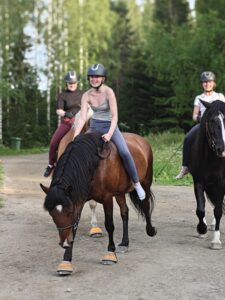 Tunti sopii kaikille jotka hallitsevat hevosen kaikissa askellajeissa. Tunnilla on välillä mahdollisuus myös laukata ja hypätä pieniä esteitä, mutta tämä ei ole pakollista! Kaikki ratsastaa oman fiiliksen mukaan.