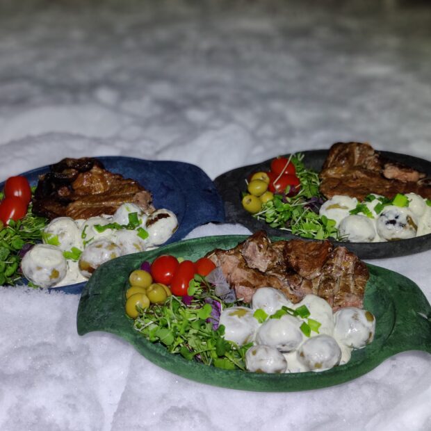 Freefinns OUTDOORS nuotioruokailupalvelu tarjoaa avotulella valmistettuja ruokia luonnon rauhassa.